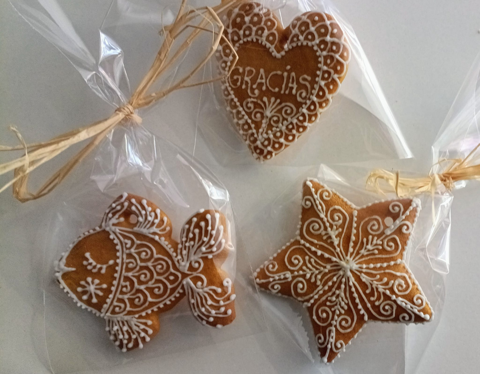 miel, harina de trigo, huevos, agua, aceite de girasol, bicarbonato sódico, clavos y anís (molidos), azúcar glas.